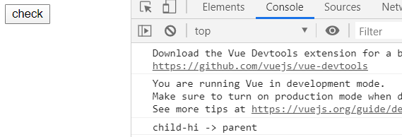 3. ("child"메소드 안) this.$emit('child-hi)[이벤트 발생]