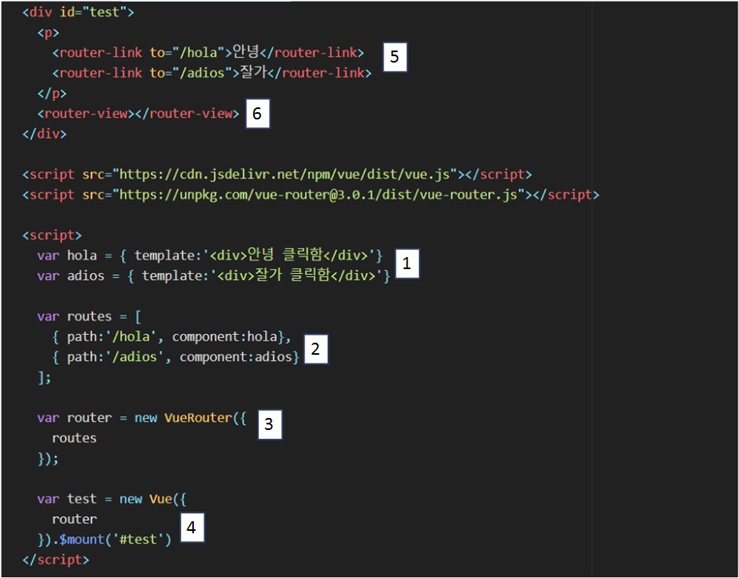 3. (router 변수) : 뷰 라우터 생성(routes내용 포함)